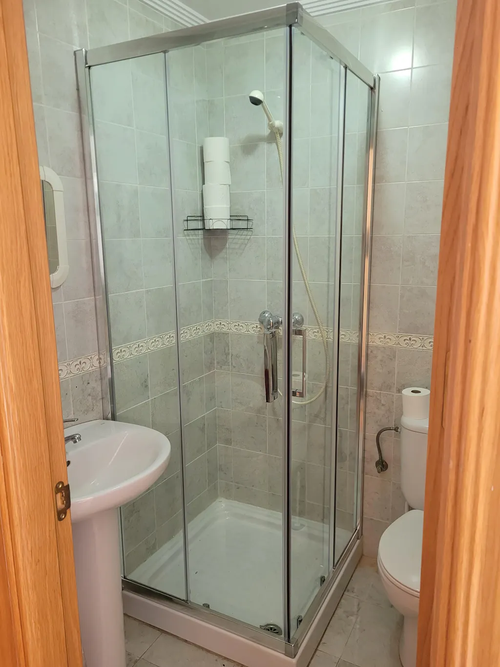 Este modelo de mampara en esquina compuesto por dos laterales con 2 vidrios fijos y 2 puertas correderas (ideales para baños pequeños), con cierre magnético en el vértice, lo hacen más cómodo a la hora de su uso y de proteger al resto del mobiliario del agua.