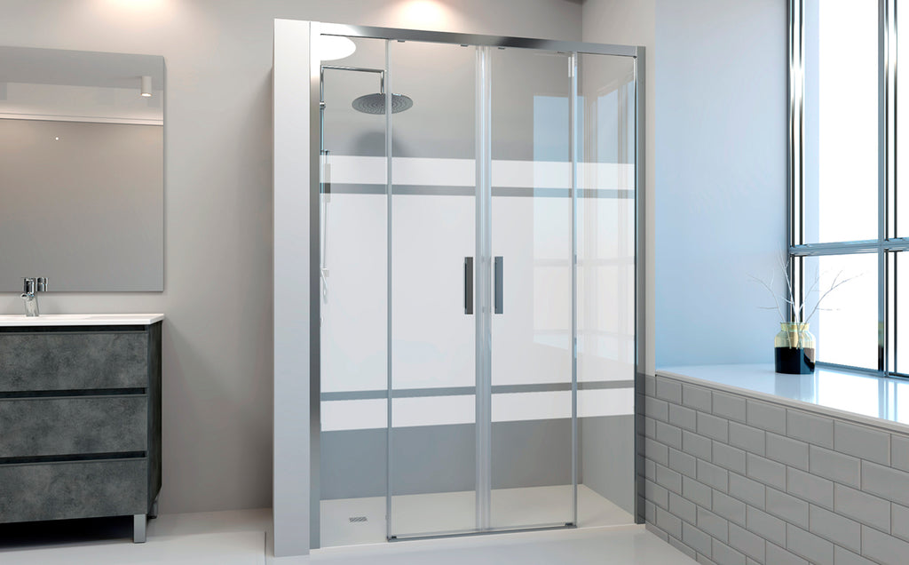 Mampara de ducha Frontal 2 fijos + 2 puertas correderas. Serigrafía Galones. Antical. (ONE SERIES)