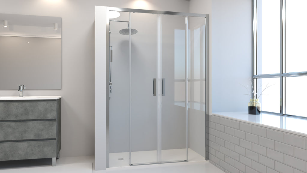 Mampara para ducha frontal 2 fijos + 2 puertas correderas